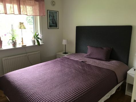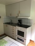 sovrum med en 140 cm säng för en till två personer, vardagsrum och kök,