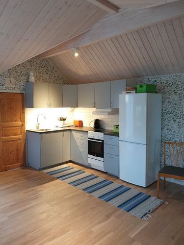Stugan består av kök med öppen planlösning där rummet innehåller matplats samt 1 bäddsoffa för 2 personer. Köket är utrustat med kyl och frys, spis, mikrovågsugn. Värmepump med kyla. Gratis Wifi. Ett sovrum med 2 bäddar (separata sängar) samt toalett med dusch. Direktutgång till uteplats i västerläge med utsikt mot Kalmarsund.