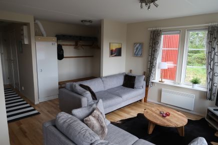 Mysig lägenhet i bottenplan med ski in, ski out i Åre Björnen. Tre sovrum, varav ett sovrum med dubbelsäng och två med våningssängar. Två toaletter och en bastu. Tvättmaskin finns i det större badrummet.