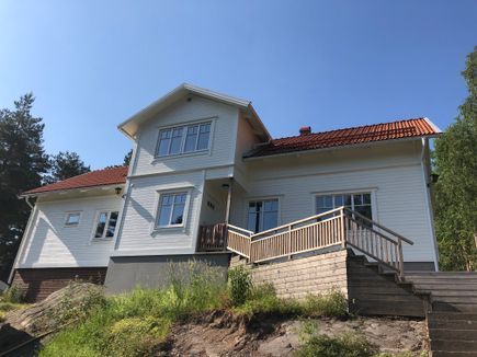 Trådlöst WiFi finns. Trappor från uppfart upp till huset.