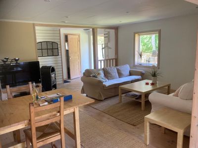 Modern och gemytlig stuga i Pukaviksbukten uthyres. Stugan har kök och vardagsrum som ett öppet rum samt 2 st sovrum. Ett större med dubbelsäng och ett mindre med våningssäng samt bäddsoffa för 2 i vardagsrummet. Svensk TV med enkla kanaler. Badrum med dusch finns givetvis också. En större altan med trädäck, där finns bord och stolar och så har man utsikt mot havet. Bra med plats för att parkera bilar finns också. På tomten finns ytterligare en stuga som just nu inte är för uthyrning men när ni är där används den inte. Egna sängkläder medtages. Bytesdag är lördag. Stugan hyrs ut under vecka 23 på förfrågan.