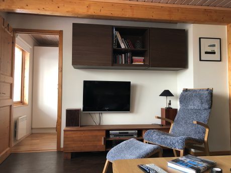 Skidtransporten är precis bredvid huset, bara att sätta på skidorna utanför dörren och glida ner till liften. Samma sak på vägen hem förstås. Fin utsikt över Åreskutan från vardagsrum och balkong. 5 minuters promenad ner till längdspåren eller så åker man i pisten ner till längdspåren om man vill det.