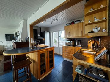 Det välutrustade köket och den trevliga baren har gott om utrymme för matlagning och socialt umgänge. Här finns även två separata duschar och två toaletter, vilket gör det smidigt även för större grupper.