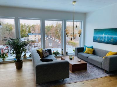 Villan ligger i ett mycket lugnt och vackert område med lantlig känsla och skärgården i direkt anslutning.