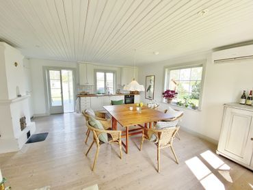 Huset ligger på samma tomt som Vängsö Sjögård och kan hyras till om ni skulle vara två familjer eller ett större sällskap som vill semestra tillsammans.