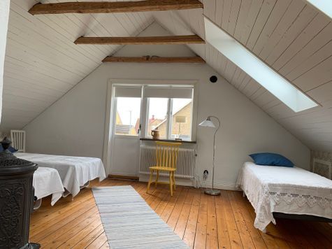 Sovrum med dubbelsäng och all-/sovrum med tre separata sängplatser.