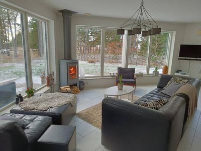 Modern 1 1/2-plansvilla, ca 100 meter från stranden, med utsikt över Karlsöarna.