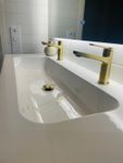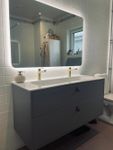 - Nybyggt annex med matgrupp och toalett med handfat.