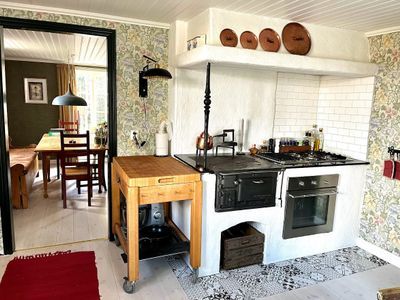 Sommaren 2025 byggde vi även en boulebana i trädgården samt att det finns en lada med fullt utrustad kök och långbord till 16 pers. Vedspis, diskmaskin, ugn, med mera. Allt för att göra en festmåltid.