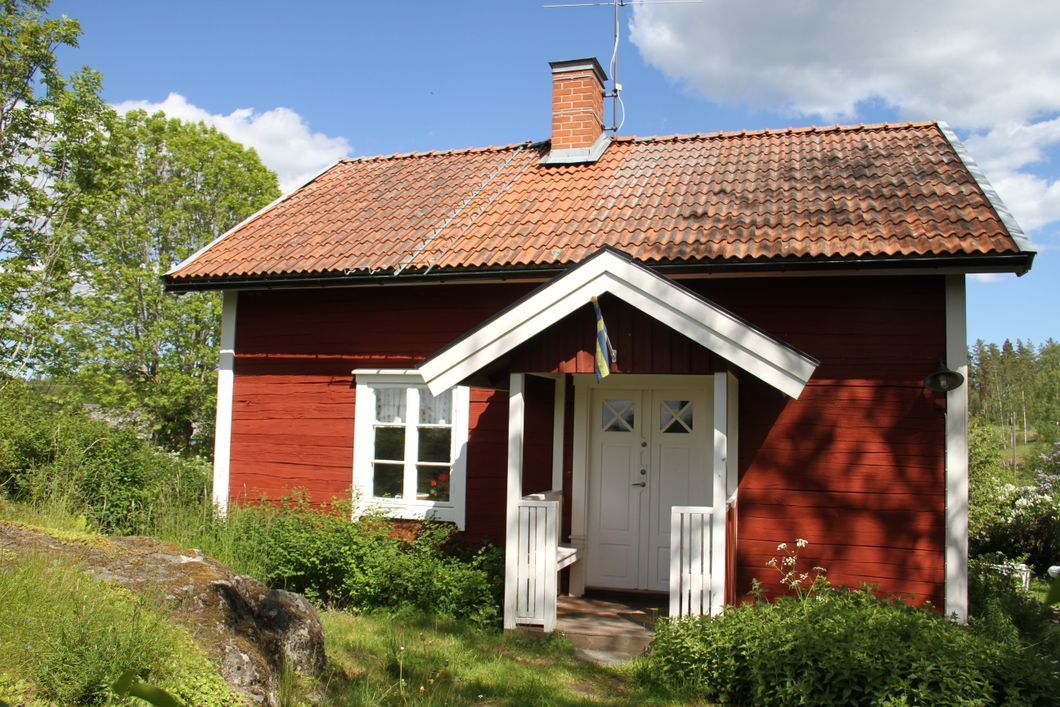 Torpet är byggt 1892 och varsamt renoverat med bevarade spegeldörrar, breda golvplank, vedspis.