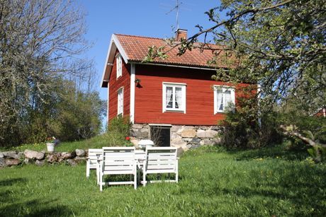 Stugan ligger centralt på gården, insynsskyddat och ostört.