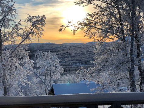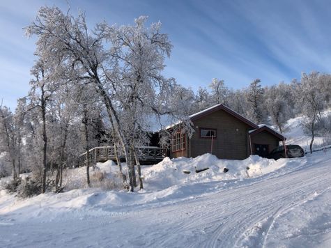 Vårt hus är beläget på Högfjällsvägen 46 i Bruksvallarna. Det ligger i en södersluttning på 860 meters höjd med fantastisk utsikt i tre väderstreck. Från storstugan ser man Härjedalens fjällvärld från Anåfjället i öster via Funäsdalsfjället, Skarvarna till Kariknallen i väster. Det är ca 200 m till trädgränsen från tomten.