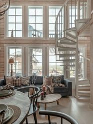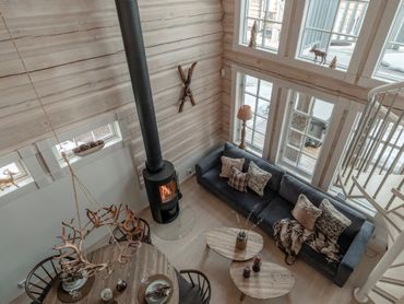Timmerstuga som har en fantastisk utsikt över backarna, har ski in och ski out läge. Stugan har en öppen planlösning mellan köksdelen och vardagsrummet. Takhöjden är 6 meter. Stugan är på 85kvm med 3st sovrum, vardagsrum, kök, 2st badrum, ett litet allrum på ovanplan, samt bastu. I stugan finns åtta till tio sängplatser. Stugan är inredd med skandinavisk stil. Från stugan är det bara att kliva ut i Hundfjällets skidsystem.
