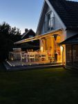 På kvällen går trädgårdsbelysningen igång automatiskt.