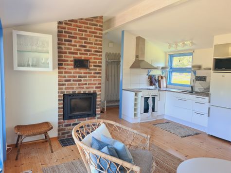 I allrummet, med utgång till altanen, finns en härlig kamin för extra mys.