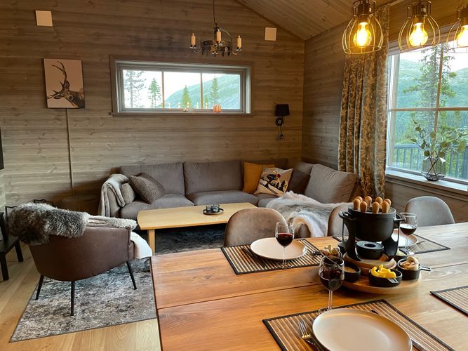 Här bor du i en nybyggd och trivsam stuga med fantastisk utsikt över Drommen och ett stenkast från närmaste nedfart.
