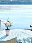 Trädgården är mycket stor och rymmer flera platser att avnjuta sommaren på och alla andra årstiderna med för den delen.. Blommor fruktträd stor gräsmatta bodar med en härlig utsikt över Mälaren.'
