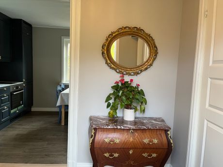Vi bor också på ett annat hus på tomten, men till gästhuset fick egen uppfart med parkering så huset känns avskilt.