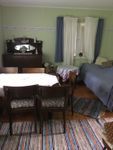 Farfarsstugan,37m2, byggd 1949och har en tidsenlig charm. Här finns 2 bäddar +1. Mysig kamin och solvärmefläkt ger värme om det behövs. Dock finns ingen toa inne (men mysigt utedass). Inget rinnande vatten. Vattnet hämtas 40m iväg, säckkärra finns. Torparköket har enklare köksutrustning: bänkspis med ugn, micro, vattenkokare, melittabryggare och kyl med frysfack.