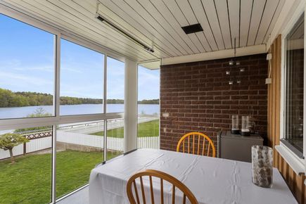 Badplats , brygga och kanot i direkt närhet till huset. Trädgården är inhägnad och lämplig för små barn.