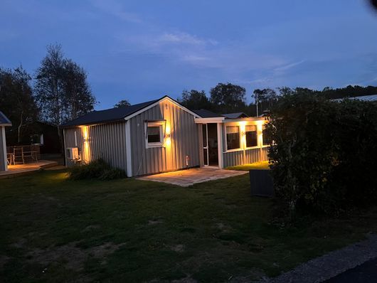 I den stora stugan finns det ett 1 sovrum med 3 fasta sängar och sedan finns det 1 uppfällbar.