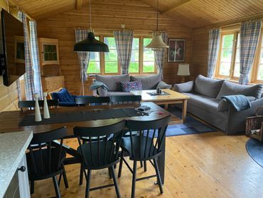 Stugan ligger i Björnbyn, 60 kvm, 2 sovrum, 4+2 bäddar (sovrum 1 = 1 dubbelsäng, Sovrum 2 = 1 våningssäng). Byggnadsår 1981-1982, allrum med köksavdelning, 2 bäddsoffor. Köket innehåller elspis med ugn, kyl och frysskåp, mikrovågsugn och diskmaskin. I stugan finns också färg TV/kabel, braskamin, torkskåp och bastu. Helt nytt kök och ny bastu installerades dec. 2023.