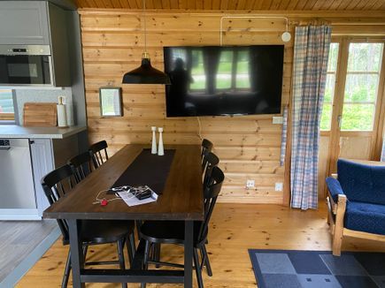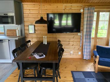 Stugan ligger i Björnbyn, 60 kvm, 2 sovrum, 4+2 bäddar (sovrum 1 = 1 dubbelsäng, Sovrum 2 = 1 våningssäng). Byggnadsår 1981-1982, allrum med köksavdelning, 2 bäddsoffor. Köket innehåller elspis med ugn, kyl och frysskåp, mikrovågsugn och diskmaskin. I stugan finns också färg TV/kabel, braskamin, torkskåp och bastu. Helt nytt kök och ny bastu installerades dec. 2023.