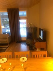 Två plan med ter sep.sovrum varav ett med egen ingång s.k studio.hall med avhängningsmöjligheter för ytterkläder m torkskåp. Entre till lägenhet samt studio från hallen, Allrum och kök i öppen planlösning. Kök med mikrovågsugn, diskmaskin,spis, fläkt. kyl/frys. Allrummet, som har braskamin är möblerat med hörnsoffa, fåtölj samt soffbord samt matbord och stolar. utgång till altaner(från lägemhet samt studio ). två duschrum varav det ena m. bastu och tvättmaskin. gästtoalett. I lägenheten två sovrum det ena med två våningssängar. allrum på ovanvåningen med bäddsoffa för två. studion består av sovrum,pentry och duschrum m toalett. bilder går att hitta på nätet. parkering ingår. fiber, tv och ljudanläggning ingår. i Priset ingår slutstädning ,hushållsel, ved, el handdukar och linne(Sängarna bäddade när ni kommer). c:a 150 m till jättelik badanläggning, pingis, minigolf och bowling restauranger mm. huset ligger i Åre by c:a 400 m till mitten i byn med bergbana till liften.