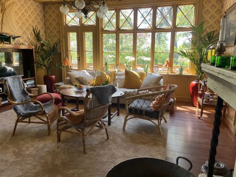 Renoverat med varsamhet och smakfull inredning i sekelskiftesstil och vissa moderna designklassiker. Huvudhuset har många vackra stämningsfulla sällskapsutrymmen, ett välutrustat kök, matplats i glasveranda, 4 fina sovrum med 2 bäddar/rum. På övervåningen finns en glasveranda med en utdragssäng för 2. Wc på varje våningsplan, badrum på övervåningen och i badrum i källaren med tvättmaskin och tumlare. Utrustning och bekvämligheter av genomgående mycket hög kvalitet. Stor veranda med eftermiddags/kvällssol möblerad i loungestil. Gasolvärmare och grill för sköna kvällar. I det inredda brygghuset finns två extra sovplatser i bäddsoffa.