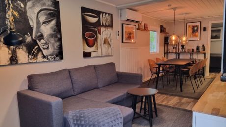 Matbord för 6 personer och smakfullt inredd med alla bekvämligheter, tv i vardagsrum samt i master, dvd och antal filmer, Nespresso kapselmaskin.