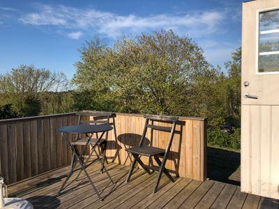 Altan med sittgrupp och fler sittplatser på tomten. Parkering för en bil. Ingen Wi-Fi eller TV, men god 4G/5G-täckning.