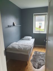 - Tre separata sovrum (5 bäddar totalt), alla sängar med resårmadrass och 90cm breda. Täcken och kuddar finns till alla sängar. Barnsäng ordnas vid behov.