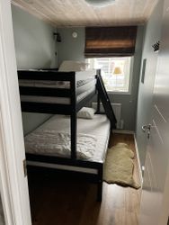 Lägenhet 2 på övervåning har altan i söderläge upp mot skidbacken, nykaklat badrum, nytt kök med kökstillbehör, torkskåp m.m. Lägenheten har 2 sovrum med 1 familje-våningssäng (bred nertill) i ena rummet och dubbelsäng i det andra rummet, samt bäddsoffa i tv-rummet för 2 personer. Internet och smart-tv. Lämpligt för 4-6 personer. Är ni ett större sällskap eller 2 familjer så är det perfekt att hyra båda lägenheterna, då man kan umgås ihop men ändå kan ha sitt egna.