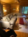 Trevlig och välutrustad timmerstuga som passar utmärkt för två familjer. Stugan ligger på attraktiva sydsidan av fjället. Tre sovrum och fyra våningssängar med 8 bäddar. En våningssäng är 120 cm bred , dessutom en bäddsoffa med två bäddar dvs det finns flera alternativa sovplatser.