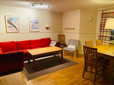 Allrum med köksavdelning. TV, torkskåp, pjäx-/skotork, parkeringsplats, Tillgång till gemensam dam- och herrbastu.