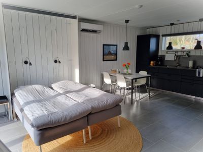 Vi erbjuder 1 allrum med sovplats och integrerat kök och 1 separat sovrum och badrum, välutrustat för 4 personer, ca 30kvm boyta med en härlig uteplats i söderläge.