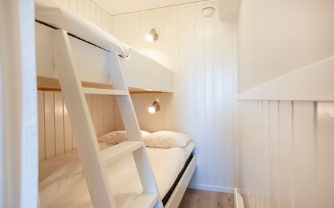 Våningssängen har en lite bredare säng (120 cm) nedtill och en övre säng på 80 cm.