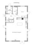 Huset består av en nedervåning med öppen planlösning kök/matdel och vardagsrum. på nedervåningen finner vi även tvättstuga, ett sovrum (dubbelsäng 180cm) med utgång till trädgården och en toalett med dusch.