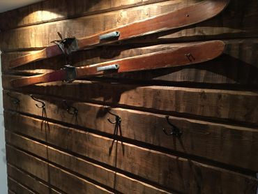 I hallen finns pjäxtorkar och torkskåp och utanför ytterdörren ett skidskåp.