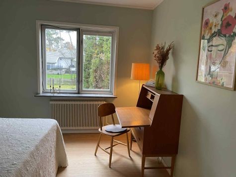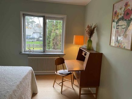 Välkommen till ett mysigt och välkomnande hus i Åhus, perfekt för både familjer och vänner som vill njuta av närheten till havet och den charmiga byn. Huset erbjuder tre bekväma sovrum med gott om förvaring. Det första sovrummet har leksaker och en våningssäng (90 cm). Det andra sovrummet är utrustat med en familjesäng med 90 cm överslaf och 120 cm nertill, vilket passar både barn och vuxna. I det tredje sovrummet finns en 160 cm säng samt ett mysigt skrivbord, idealiskt om man behöver arbeta en stund även under vistelsen.
