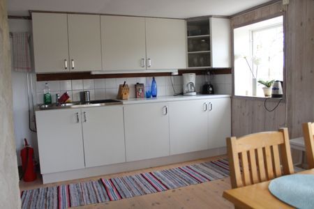 I huset finns 1 vardagsrum, 2 sovrum 1 kök, toalett, dusch, tvättmaskin. Huset är charmigt, gammalt, men du bor bekvämt. Köket är stort, fungerar fint för 6 eller fler. I vardagsrummet kan du välja om du vill att någon eller några ska bo i bäddsoffan.