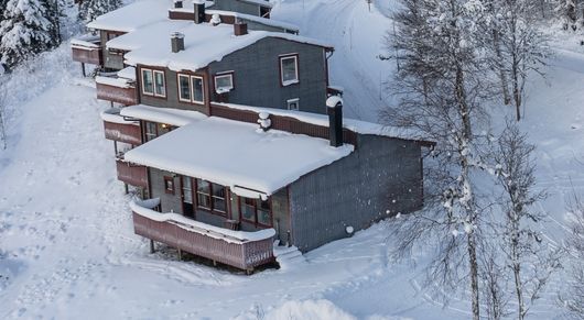 Huset har en öppen härlig planlösning mellan det fullt utrustade köket till det stora fina allrummet. Här kan du lugnt sätta dig framför kaminen och se ut över det vackra fjällen genom stora fönster, eller varför inte sätta dig på altanen och njuta av solen en vacker dag. I hallen finns ett torkskåp och bra yta för kläder, pjäxor och skor. Ett badrum men WC, dusch och tvättmaskin samt en härlig bastu att värma sig i efter en lång dag i backarna.
