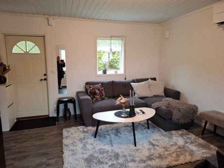 Kök och allrum renoverat 2025 modernt inredda. Köket är fullt utrustat med ny kyl och frys, spis med glashäll/ugn, mikrovågsugn samt diskmaskin. Allrummet är möblerat med nya möbler, inklusive bäddsoffa, soffbord och matbord, samt utrustat med en ny TV på 43 tum.