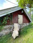 Två stora kolgrillar disponeras av hyresgästen. Två altaner med utemöbler. Eluppvärmd badtunna på nära 2 m3 för 8-10 personer. Hammock. Del av altanen under tak sk paviljong.
