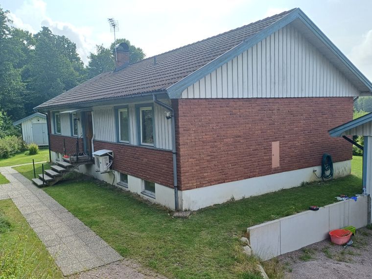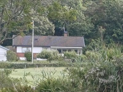 Stugan ligger för sig själv med vacker vy och har en härlig stor trädgård. Har här närhet till salta bad. Tomten består av gräsmatta passande för bollspel, lek och umgänge. På den stora altanen kan ni sitta och njuta med fika eller grilla. Altanen ligger i väst och ni kan sitta i fina sommardagar och titta på solnedgången.