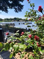 med utsikt mot Karlskrona och omgivande öar. Här kan du njuta av vackra solnedgångar och härliga promenader i vackert naturlandskap. Du kan också göra en tur med roddbåten. Huset ligger endast 10 meter från havet och har en uteplats( brygga) som är byggd över vattnet. Tre minuters gångväg från huset finns Bredaviks brygga varifrån man kan ta pendelbåten till Karlskrona. Båtturen tar cirka 20 minuter. Karlskrona är en trevlig stad för shopping och sightseeing. Här finns ett av Europas förnämsta Marinmuseeum där du kan få en föraning om hur det är att vistas inne i en ubåt. Du kan också göra besöka Dragsö som ligger på gångavstånd från centrum, och som gjort sig vida känd för sina små röda stugor med fantastiska trädgårdar. Känner du för att äta lunch finns det många fina restauranger i Karlskrona.