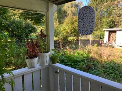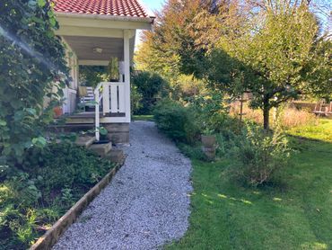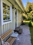 Stugan eller annexet ligger på en stor trädgårdstomt och har separat ingång med egen parkeringsplats och en avskild egen trädgårdsdel med utemöbler och grillplats. Verandan med utemöbler har utsikt ut mot övriga trädgården. Busshållplats finns ca 200 meter bort och har linjer mot Söderåsens Nationalpark och motsatta hållet till Svalöv med tågstation. I centrala Röstånga, som ligger ca 700 m bort finns uthyrning av cyklar och ett urval av restauranger och underhållning: café som har öppet alla dagar, en lokal pizzeria, restaurang i gamla stationshuset med mat och underhållning och nyrenoverade Nackarpsdalens Gästis, Röstånga har även en välsorterad ICA-butik och mack. I motsatt riktning söderut finns Röstånga utomhusbad som är en del av campingen. Kanotuthyrning finns i Djupadalsmöllas kanotuthyrning 9 km bort.