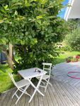 Semesterbostaden är belägen i ett etablerat lugnt villaområde har, i huvudsak insynsskyddad, lummig trädgård i lä med plats för matstunder vid grillen lek och avkoppling.
