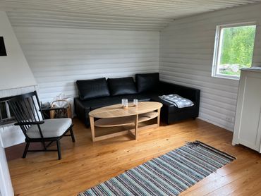 I stugans sovrum finns en praktisk våningssäng, och i det intilliggande annexet finns både dusch och toalett samt ett extra rum med ytterligare en bäddsoffa – perfekt för gäster eller större familjer. Roddbåt finns tillgänglig vid stranden för den som vill ge sig ut på en fisketur eller bara njuta av sjön från vattnet.