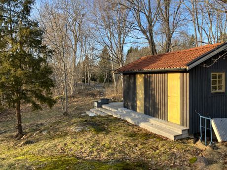 Vid Roslagsleden intill vacker promenad längs Väddö kanal, med gångavstånd till morgondoppet från badbryggan. Båt kan ingå. Högt belägen stuga med ett sovrum 180-säng, ett litet med 80-säng, en separat gäststuga med 1 140-säng.